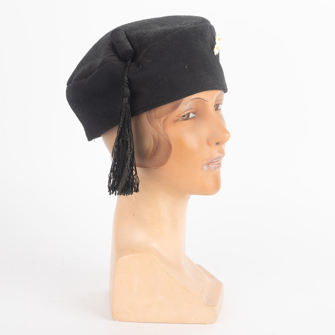 3076093. SKYLTHUVUD, med hatt, gips och textil, 1900-tal.