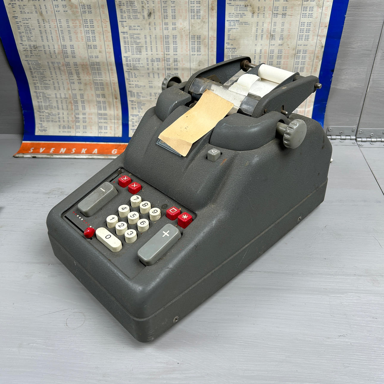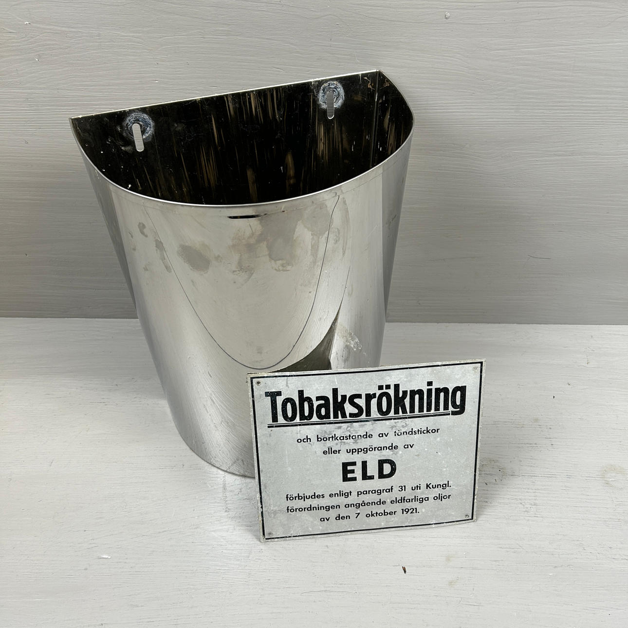 Bl.a papperskorg, skyltar, signallampa, räknemaskin, behållare med tapp (höjd 56 cm) m.m