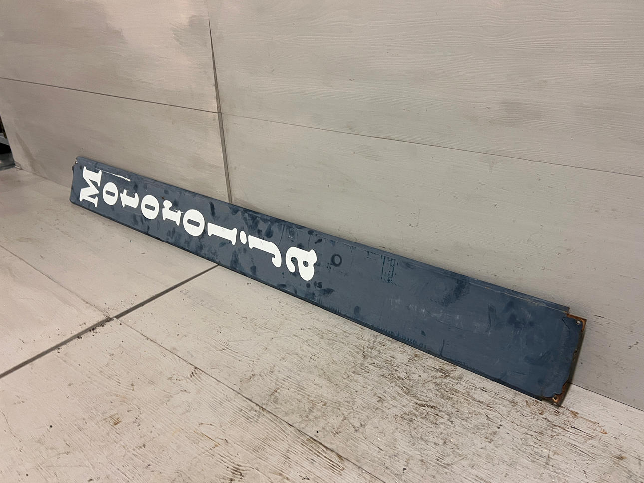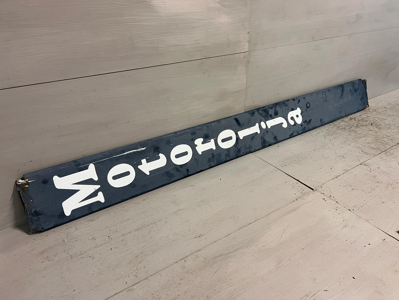 Skylt "Motorolja" plåt, mått 173x18 cm