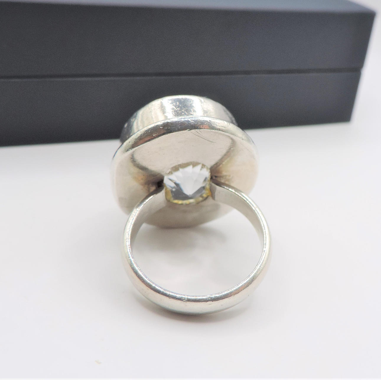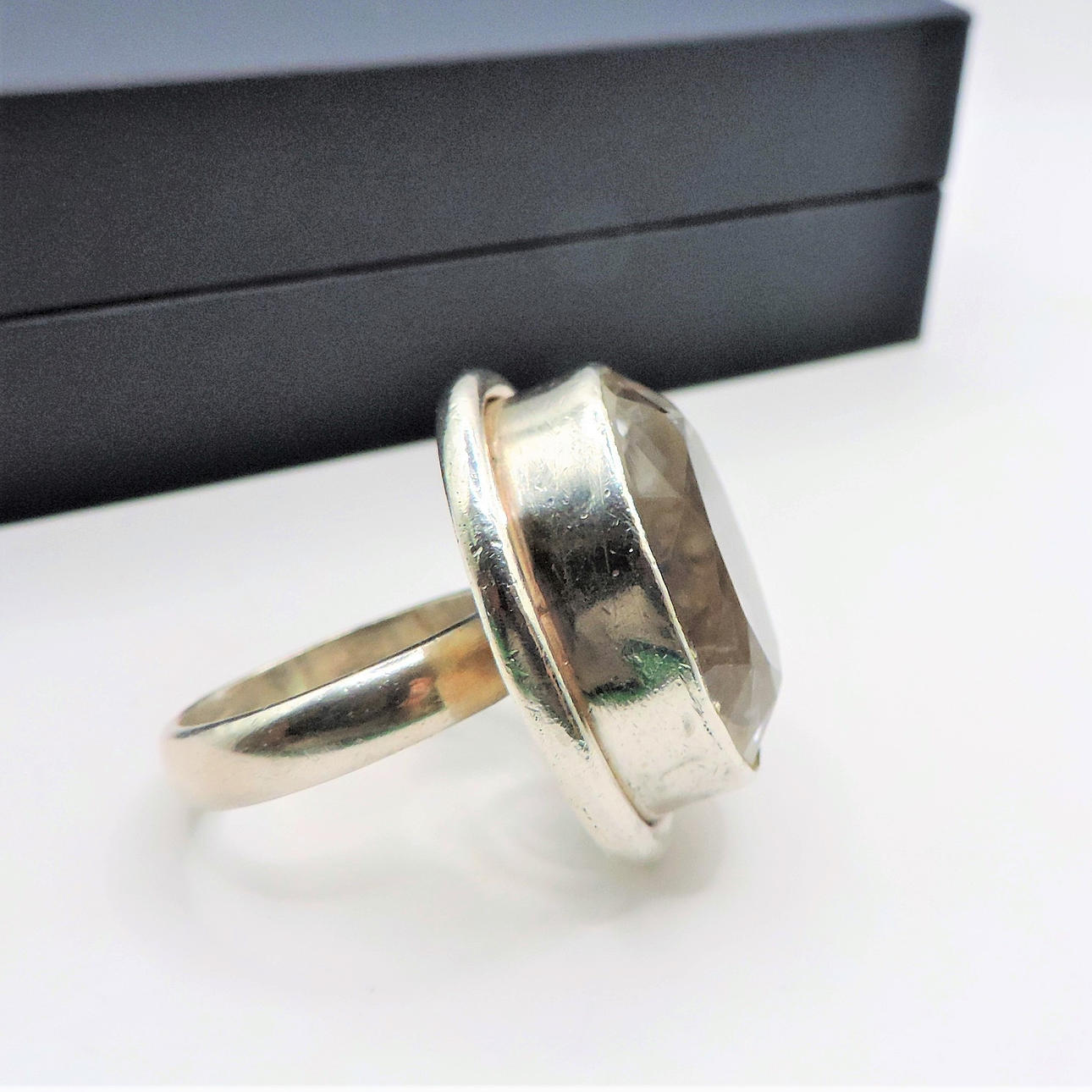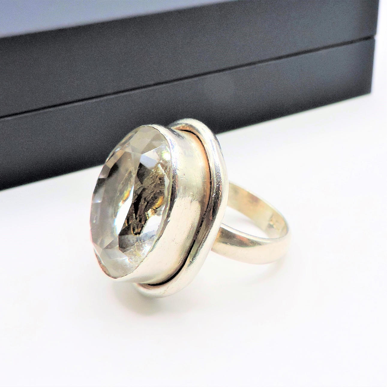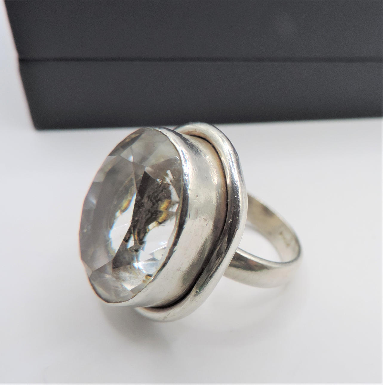 VINTAGE TJOCK SILVER 25CT BERGKRISTALL RING.
