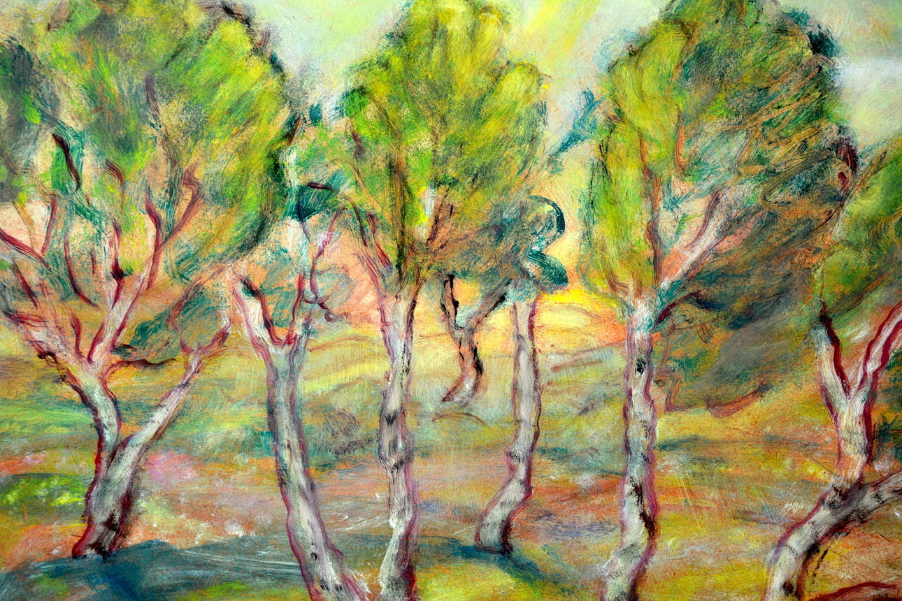 Landskap med träd. Signerad. 41x58 cm.