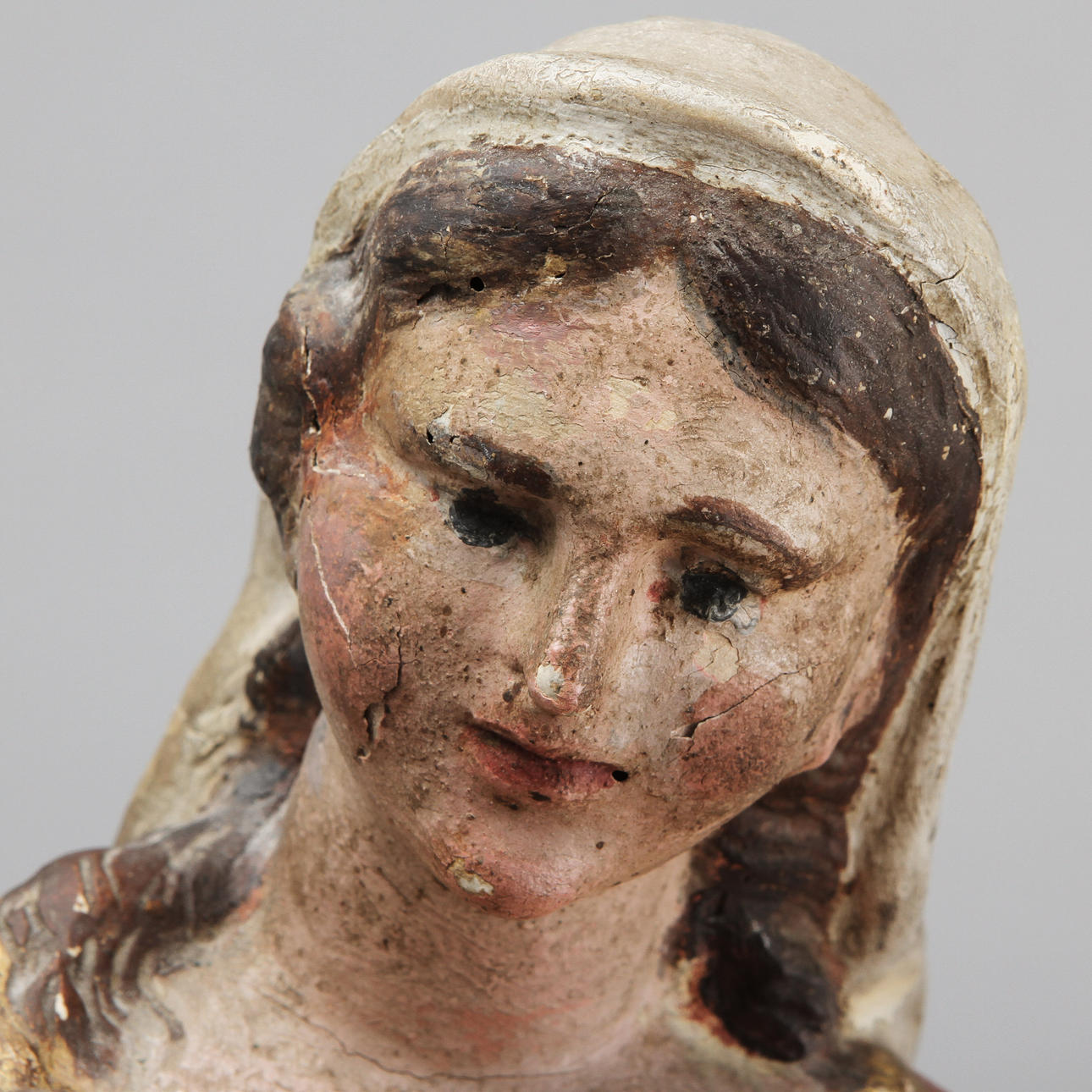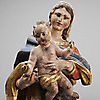 Madonna med barnet. Bemålat trä. Höjd 63 cm.