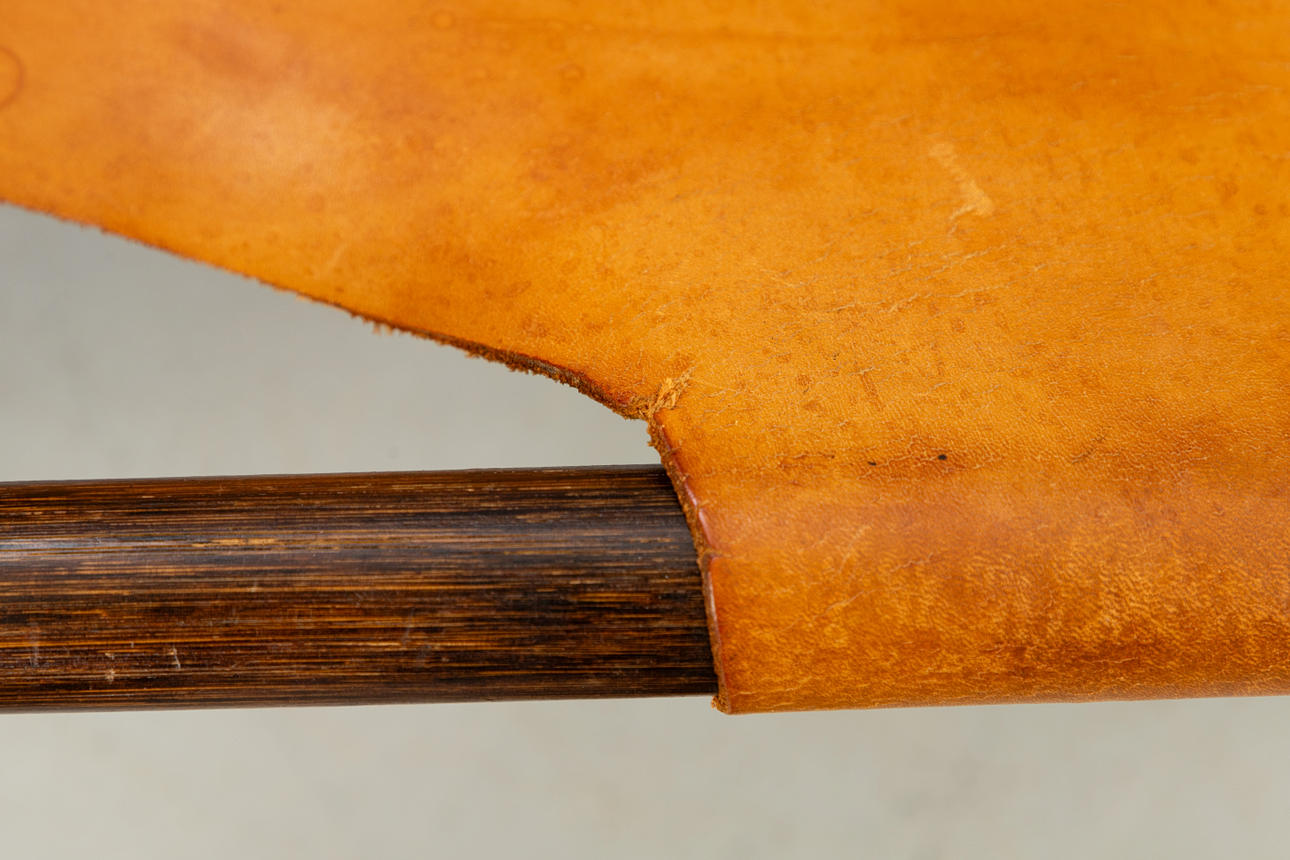 'Safari' fåtölj. Bambu & läder, 1970-tal.
