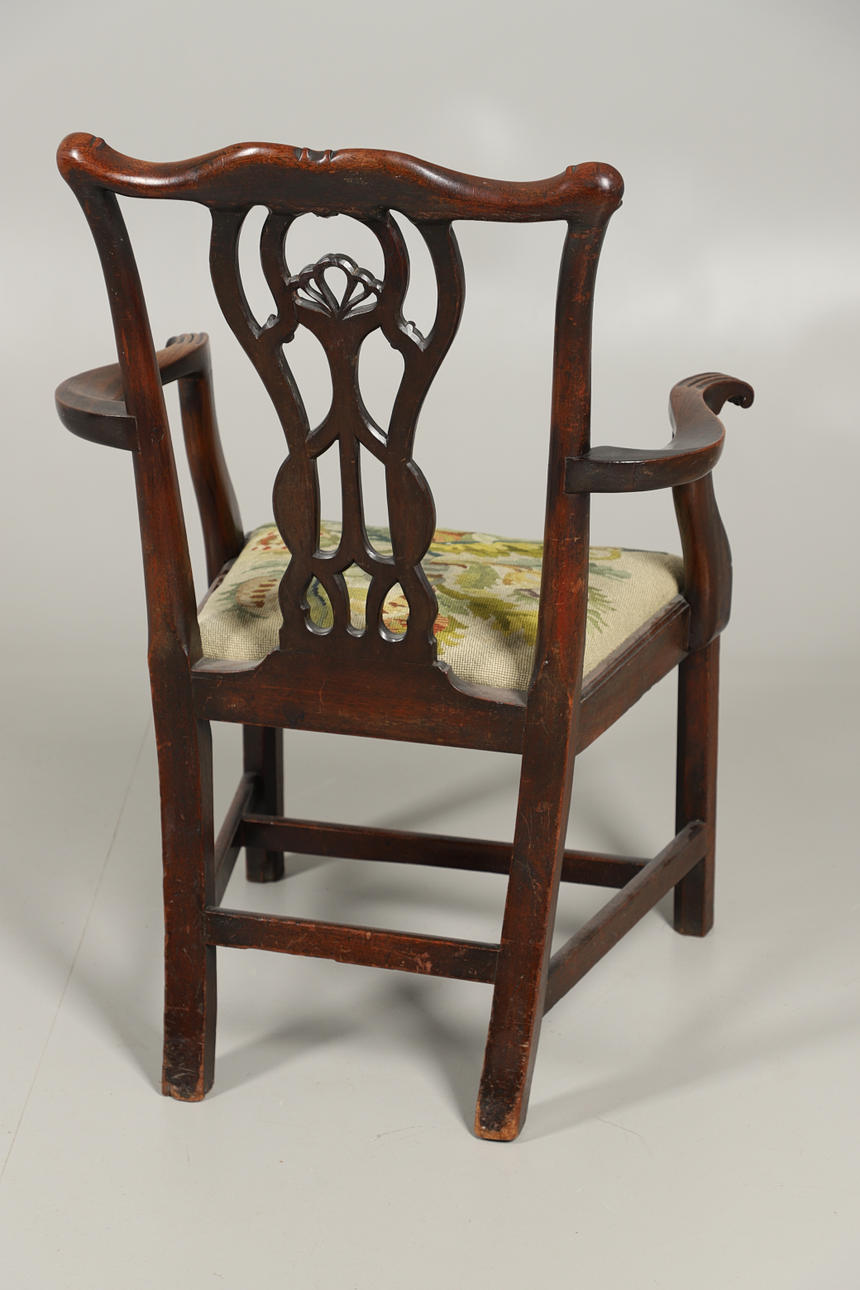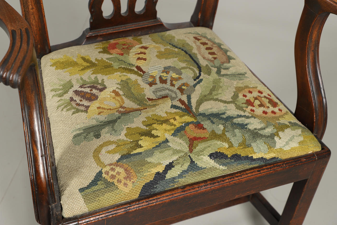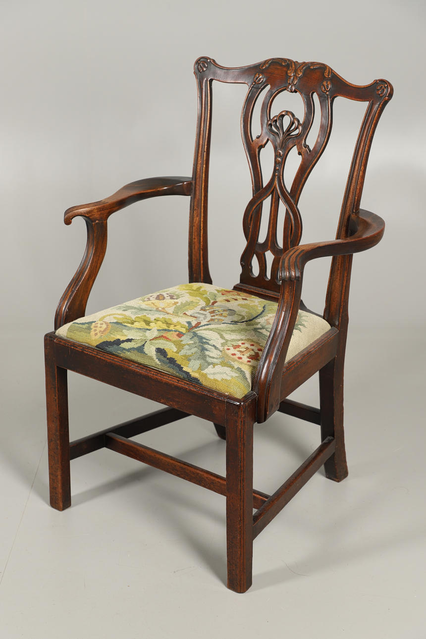 3080913. EN MAHOGNY CHIPPENDALE MÖNSTER ARMBÅGE STOL.