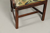 genomborrad och snidad rygg, utan svepta armar, täckt infällbart säte i ullarbete, på fyrkantiga avfasade ben förenade med H-bår,