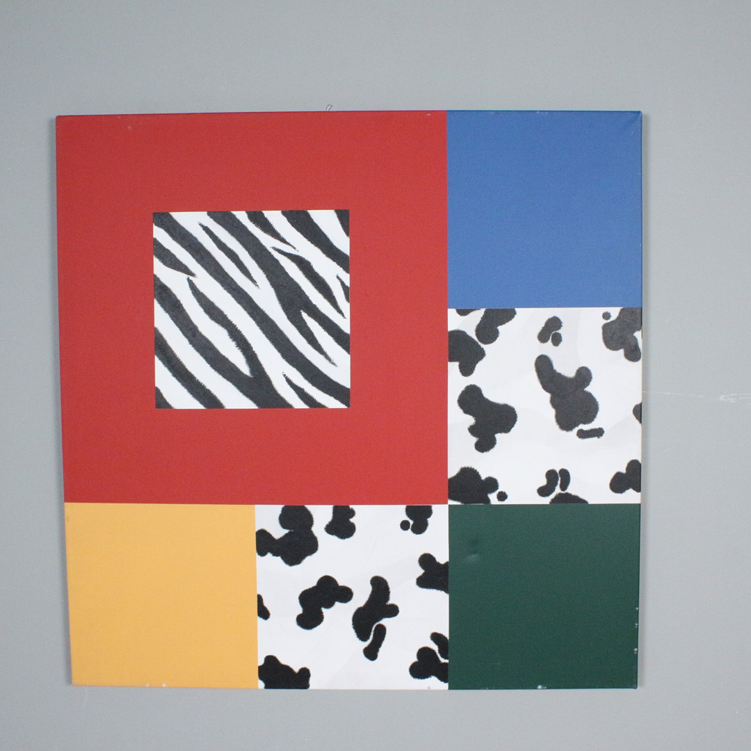 3081110. BERND VAN DE LEEK. akryl på duk, ”Färgglada lådor”.