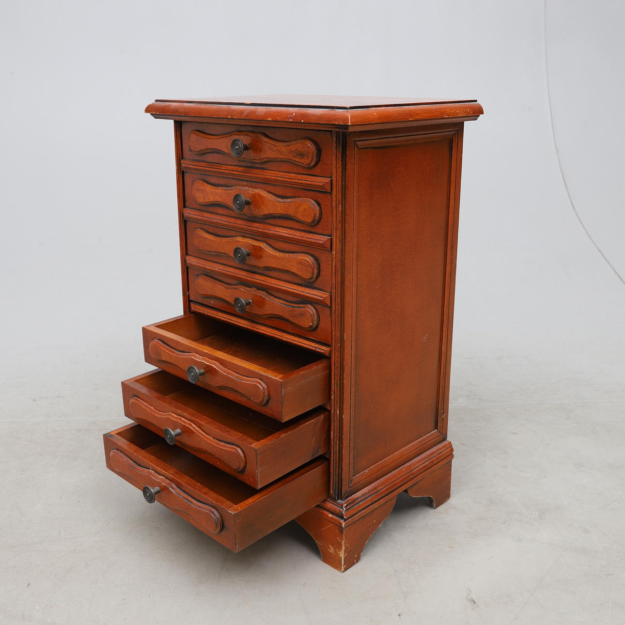 Lådor och fällbar lucka. Längd ca 39cm, bredd ca 28cm, höjd ca 61cm.