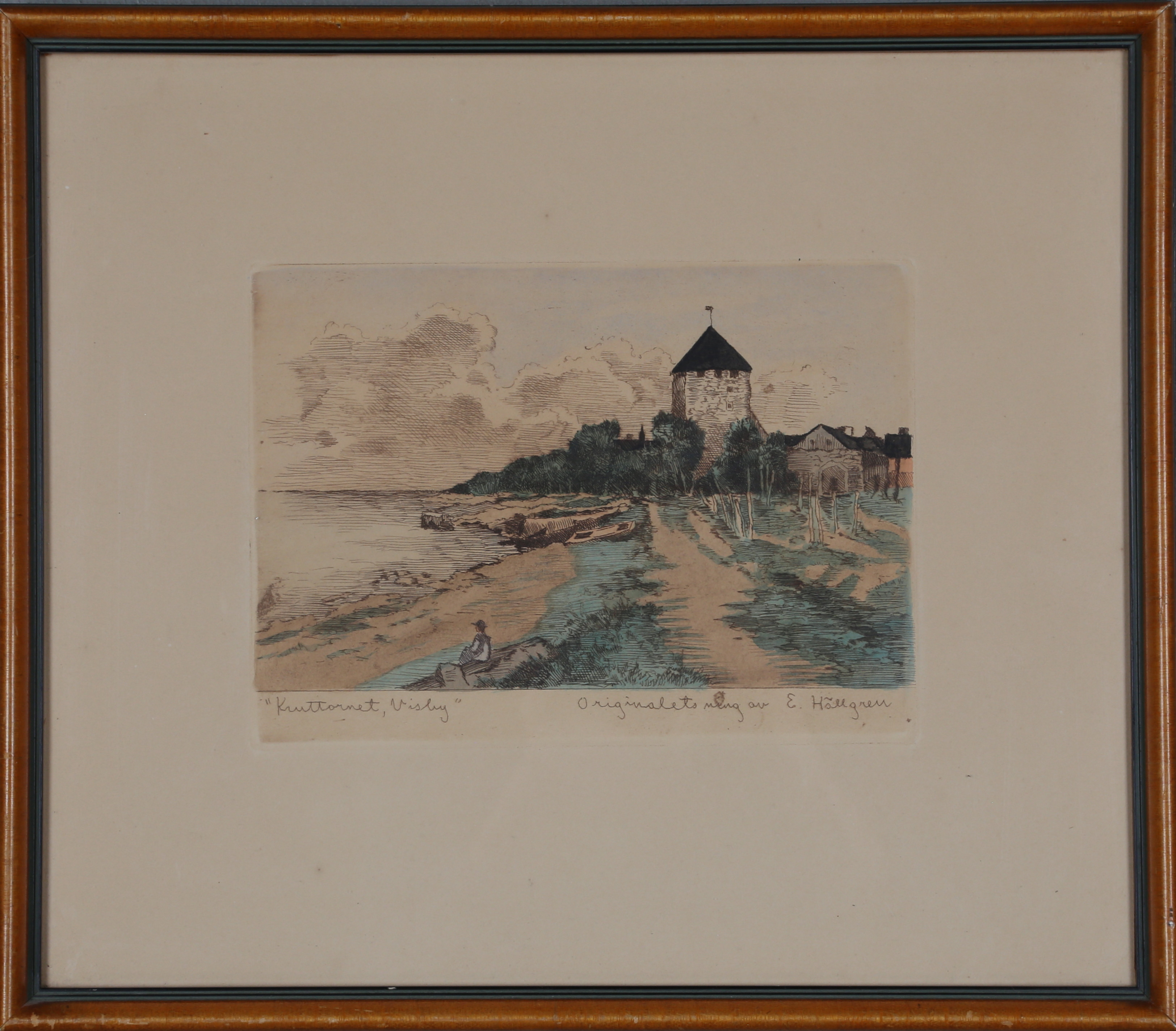 3081663. ERNST HÄLLGREN. "Kruttornet Visby", Etsning, signerad.