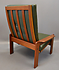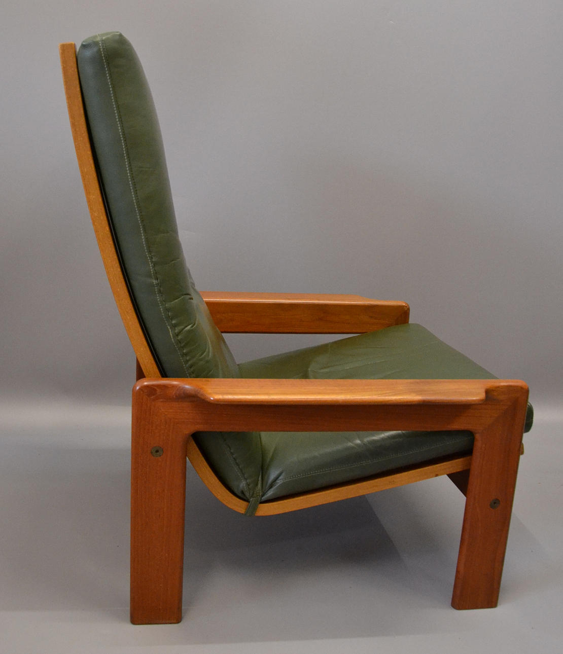 Teakram med grön läderklädsel, avtagbar stoppning, bredd: 76,5 cm, höjd: 96cm, djup: 65cm.