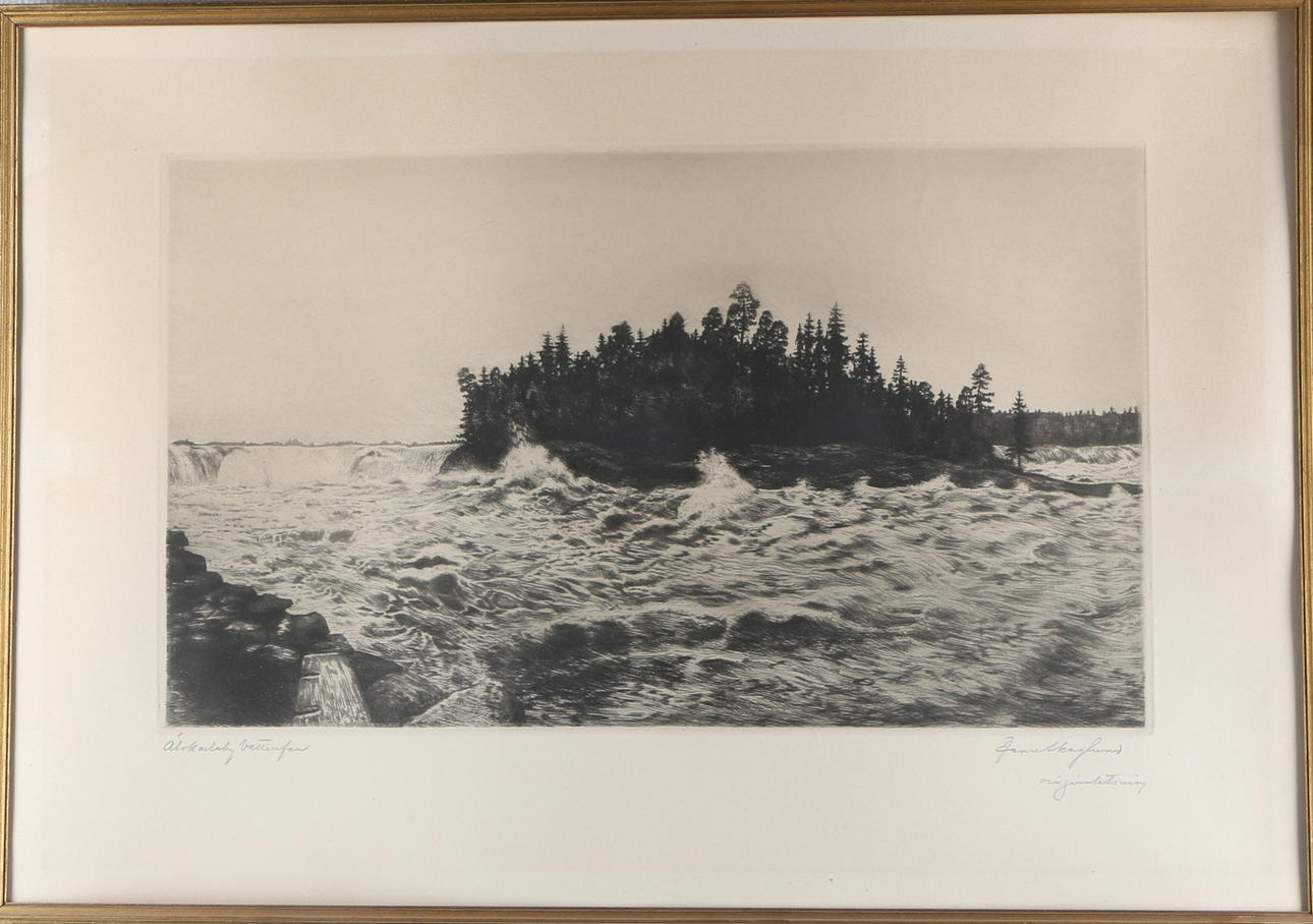 Älvkarleby vattenfall, 44 x 64 cm, signerad Jean Skoglund.