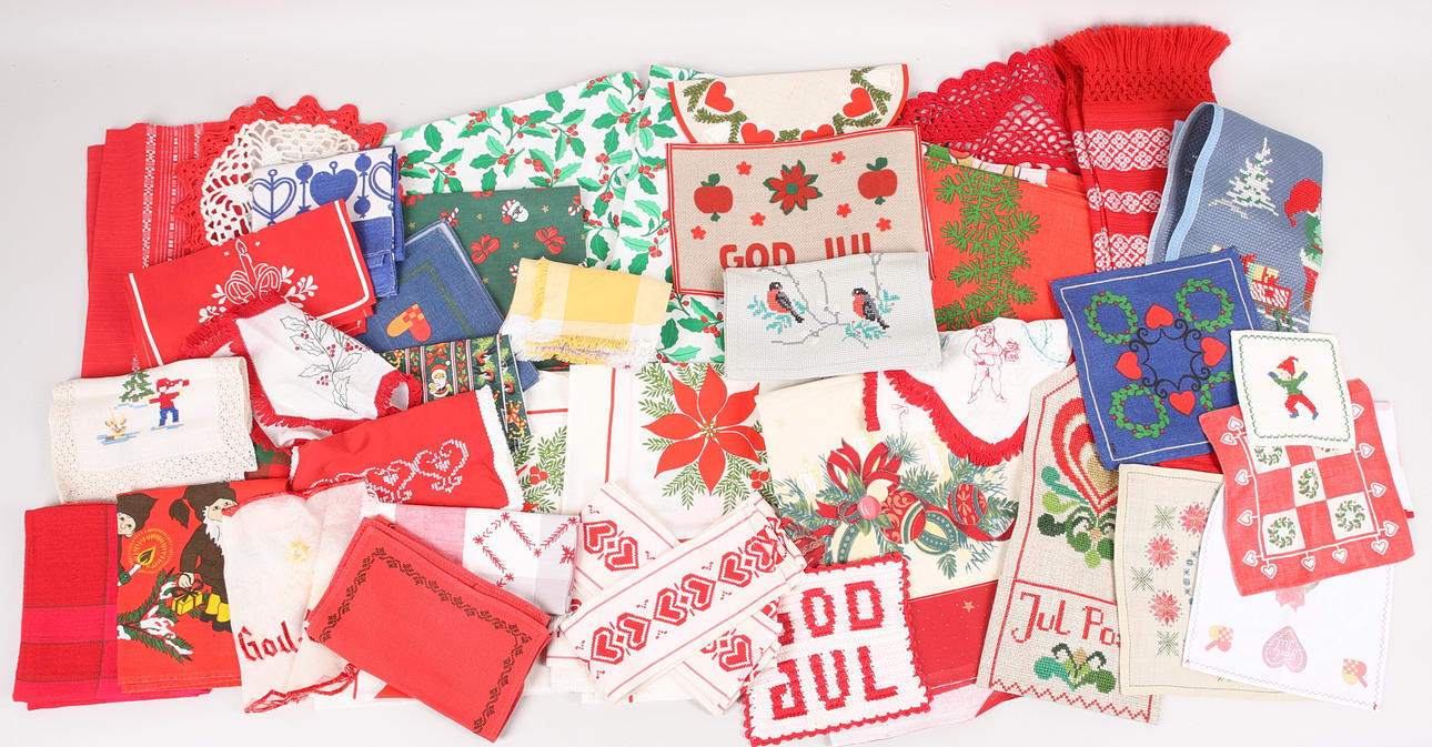 Bonader, dukar, löpare, grytlapp, gardiner. Olika storlekar och mönster.