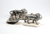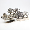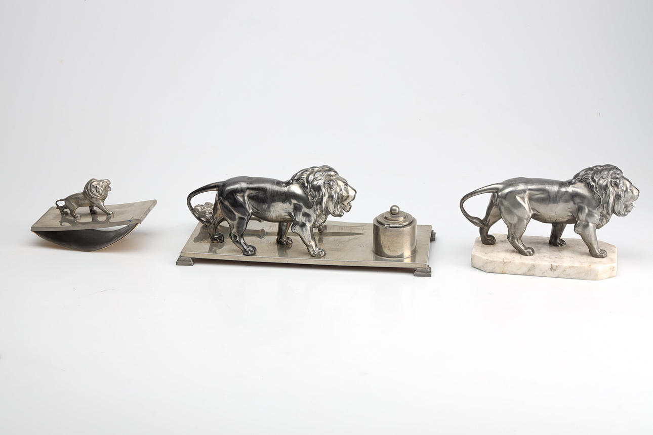 Dekor med lejon, tenn samt tennlegering. Största L ca 29 cm.
