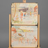 Kraftigt slitage, hängkrokar saknas på två st, revor, hål.