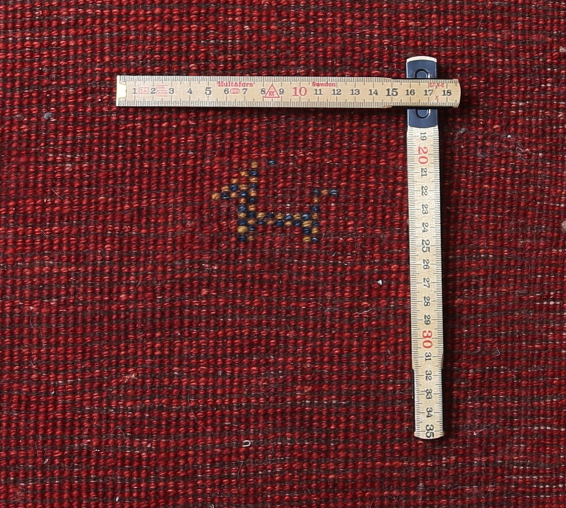 I materialet ull, ryamodell. Basfärg gående i en röd nyans, mönster i färgerna gult och blått. Med etikettmärkning. Medföljer garantibevis.