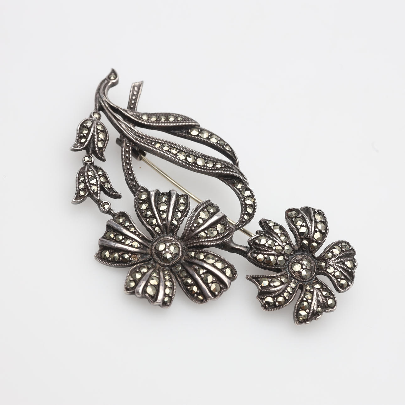 BROCH med markasiter silver.