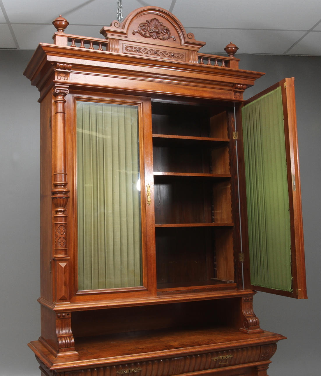 Lås och nyckel till underskåp saknas. Nycklar till lådor saknas. Nyckel till vitrinskåp finns.