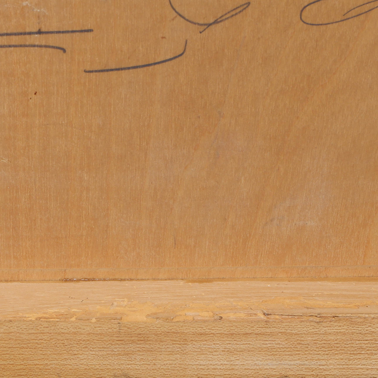 Bruksslitage, maskstunget undertill samt limrester.