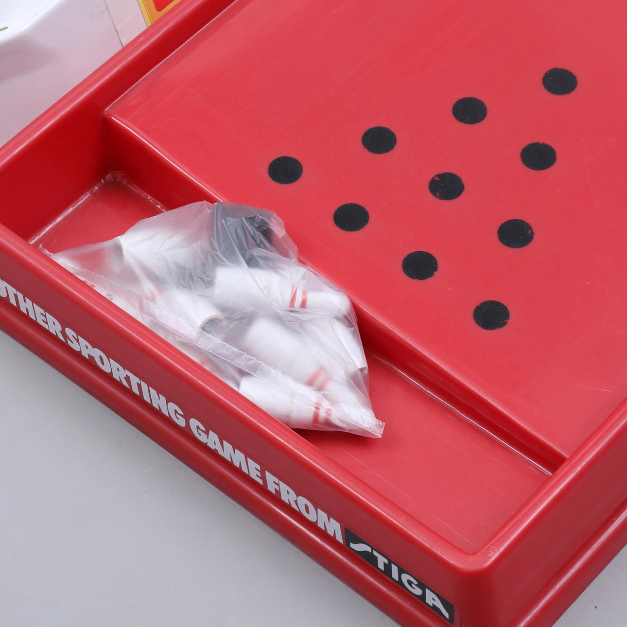 Hockeyspel storlek 82 x 45 cm. Bowlingspel storlek 85 x 34 cm.