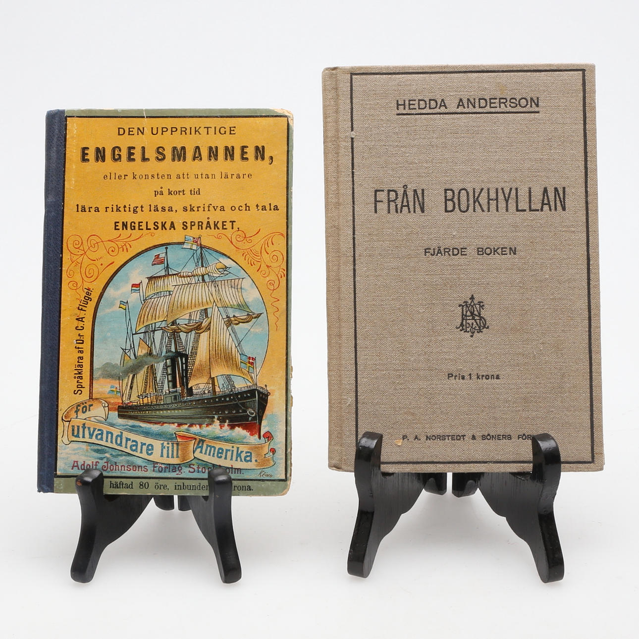 Bland annat, D:r M. Luthers Lilla Katekes med kort utveckling, tryckt 1929. Bilder ur djurvärlden, Ur Sveriges flora, m.m.