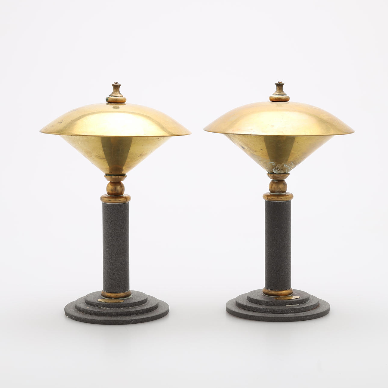3095698. OLJELAMPOR, ett par, metall, "Two Faces", 1900/2000-tal.