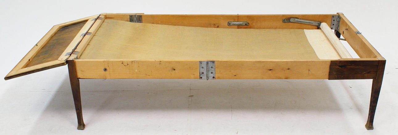 som pall höjd 47, längd 85, bredd 37 cm, utfälld 183x79 cm.