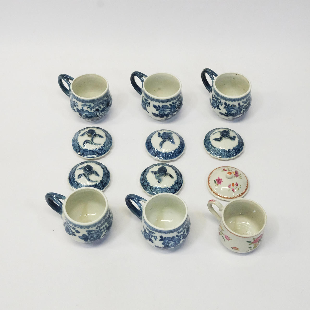 Fem krämkoppar, orientaliska, 1900-tal, höjd 6cm, diam. 5,5cm. Kräm kopp, Famille Rose, kina, omkring 1900, höjd 5,5cm, diam. 5,5cm.