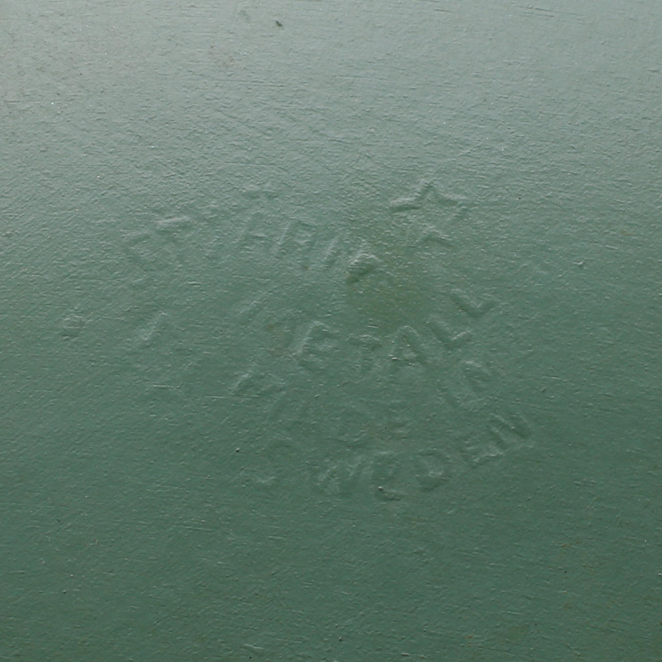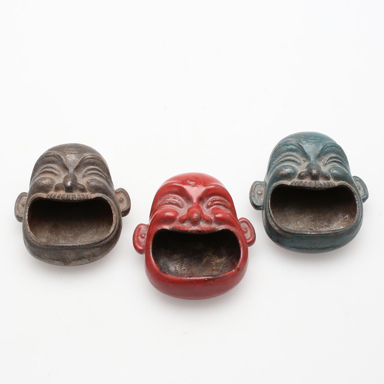 3 st askfat, gjutgjärn, blå, röd samt metallfärgade, Skoglund & Olson, Gefle.