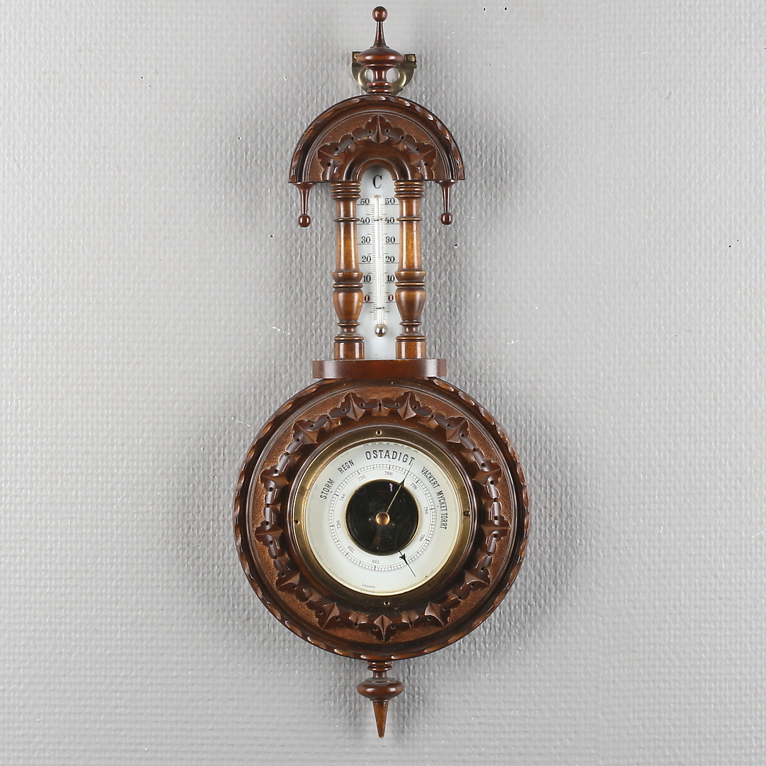 310227. BAROMETER/TERMOMETER, BORDSUR, samt RÄKNEDOSA, 1900-tal.