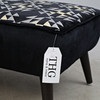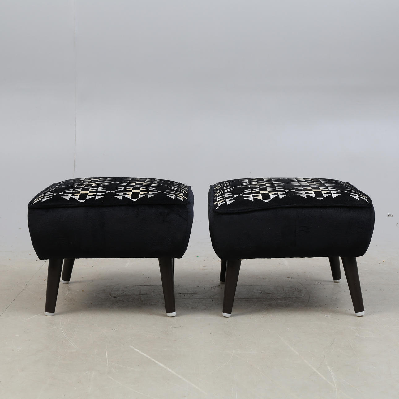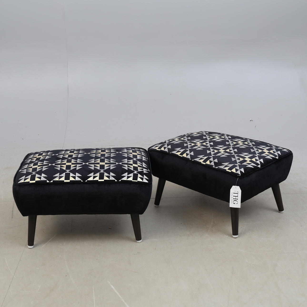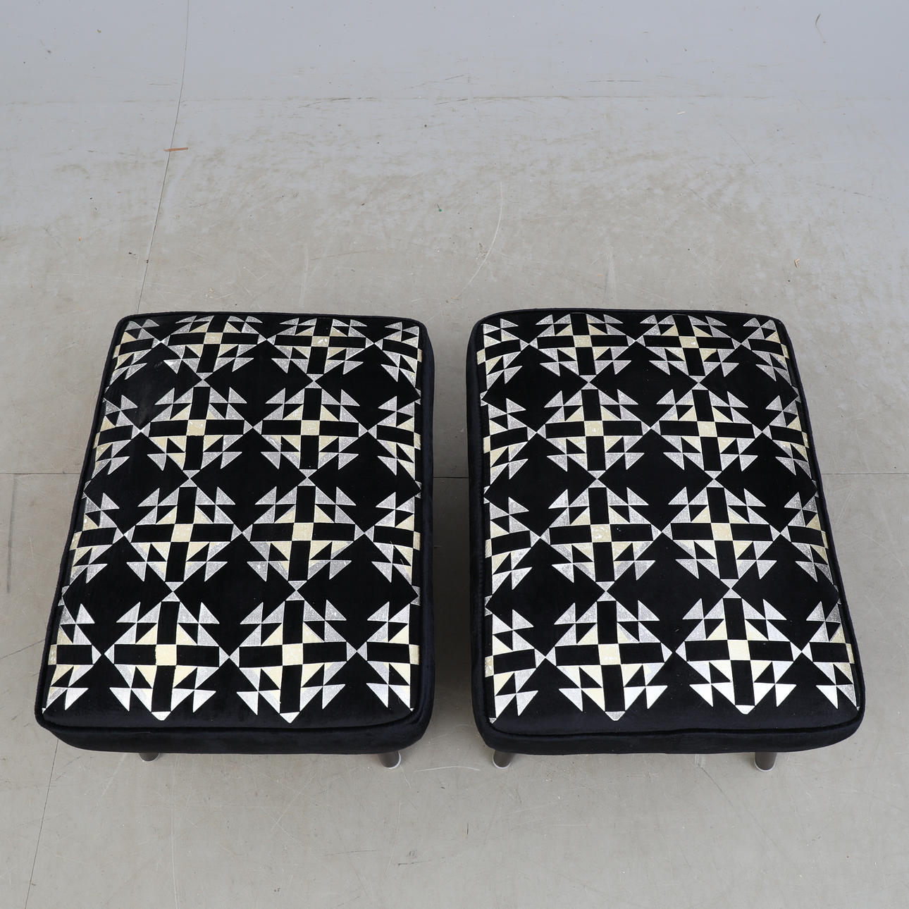 Sammetspall/puff med mönster i silver och guld. Basen på pallen är i "ribbad" sammet och har ett geometriskt tryck