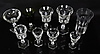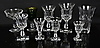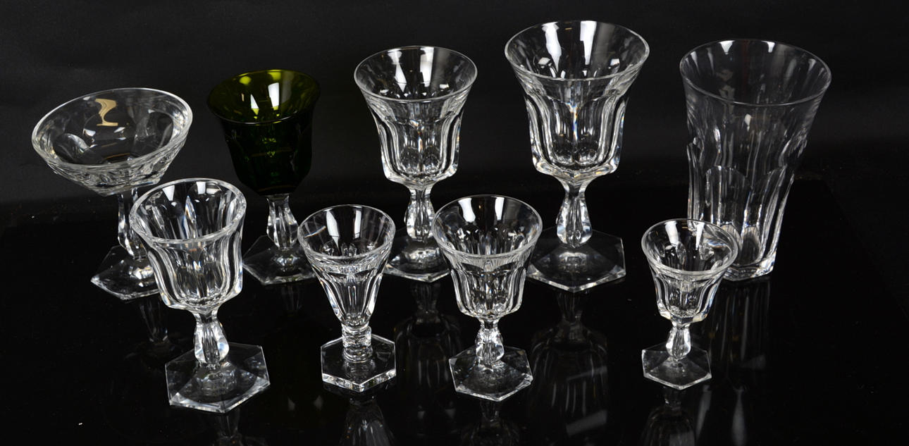 Grogglas 12 st. Vitvinglas 13 st. Snapsglas 11 st. Likörglas 5 st. Sherryglas 3 st. Rödvinglas 15 st. Champagneskålar 17 st. Madeiraglas 13 st. Gröna vitvinglas 17 st. Enligt inlämnaren handgjorda i Frankrike.