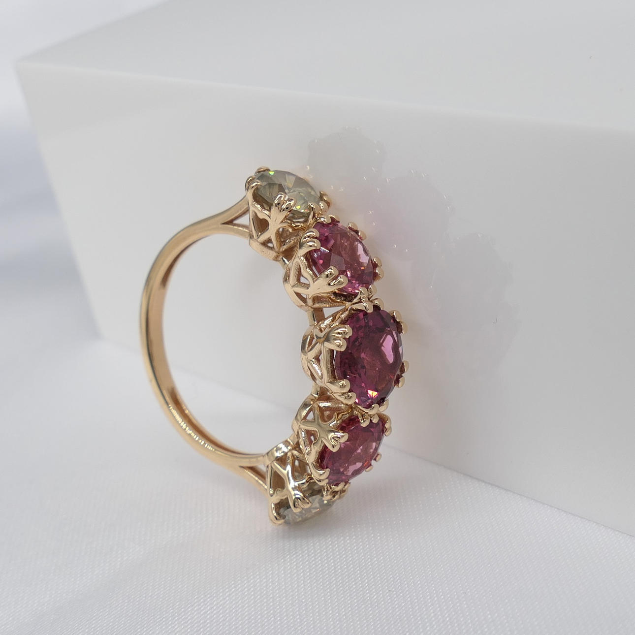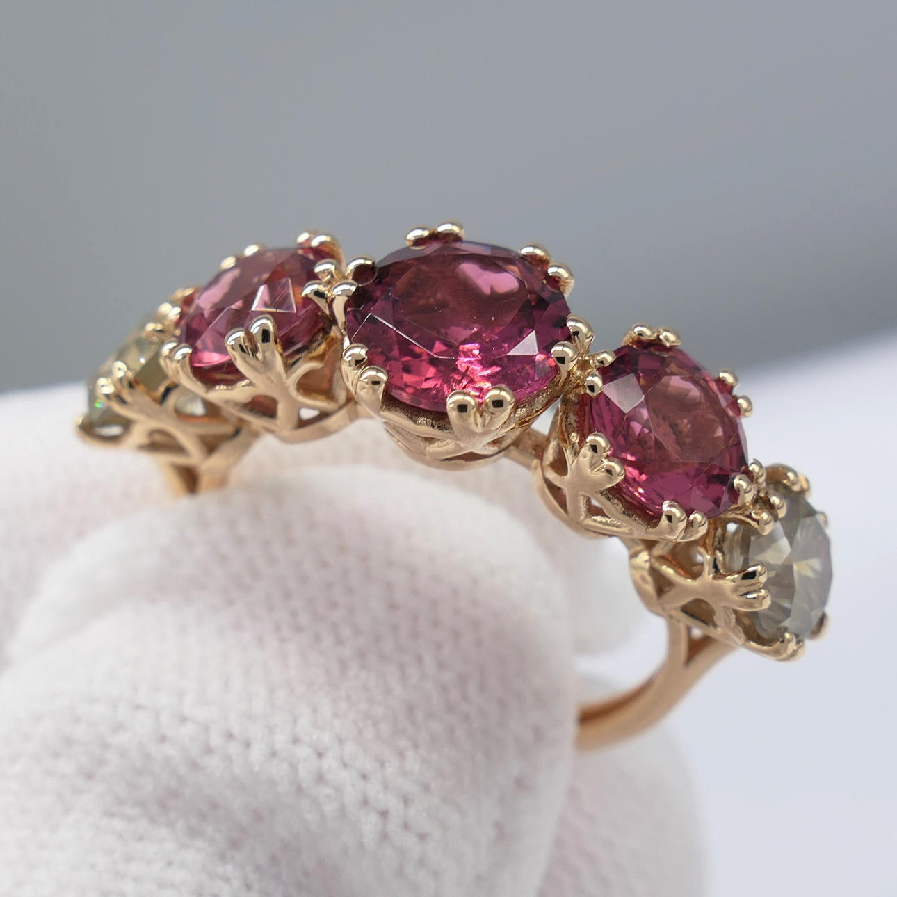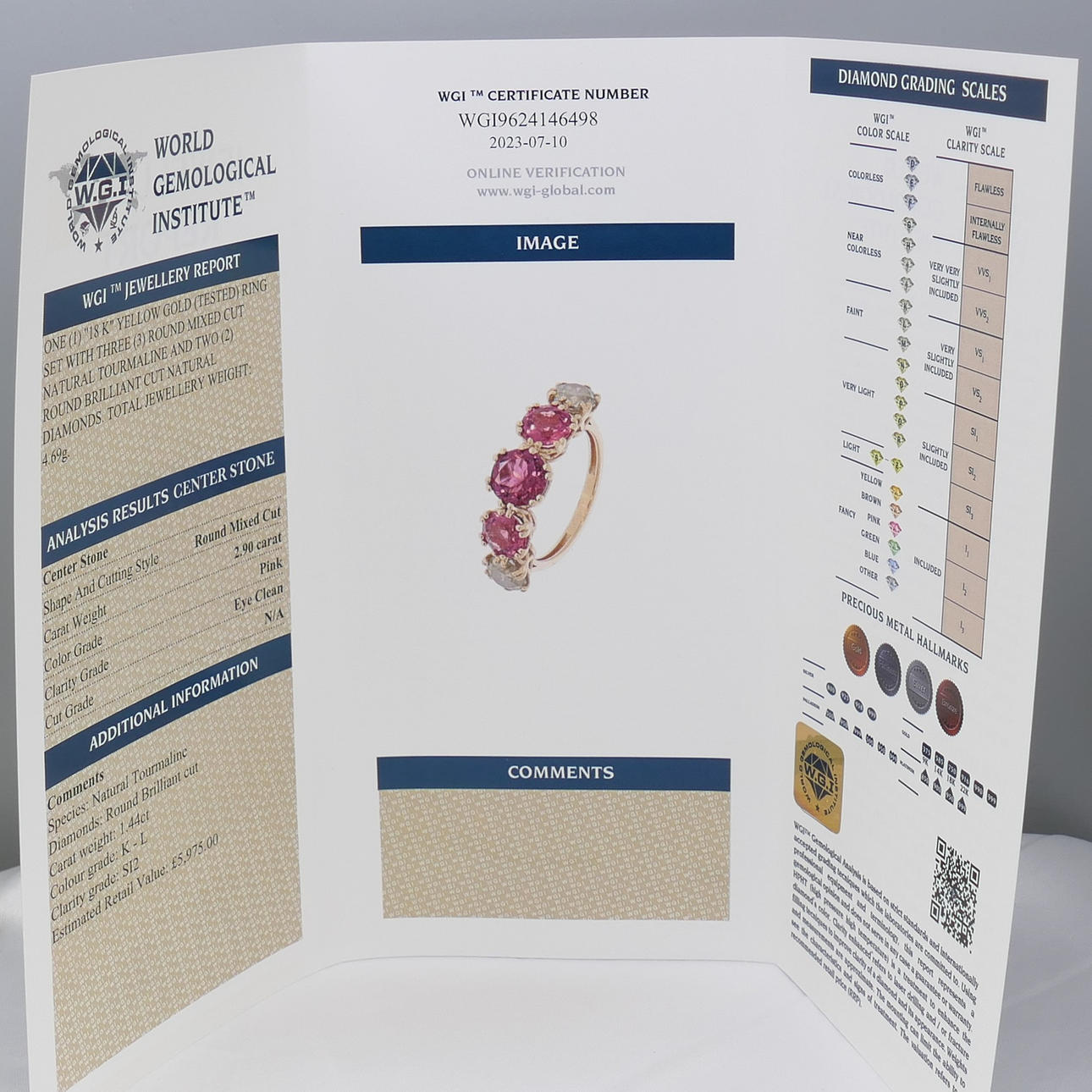 Ett certifierat 18k gult guld ringklo set med graderad naturlig turmalin och diamanter.