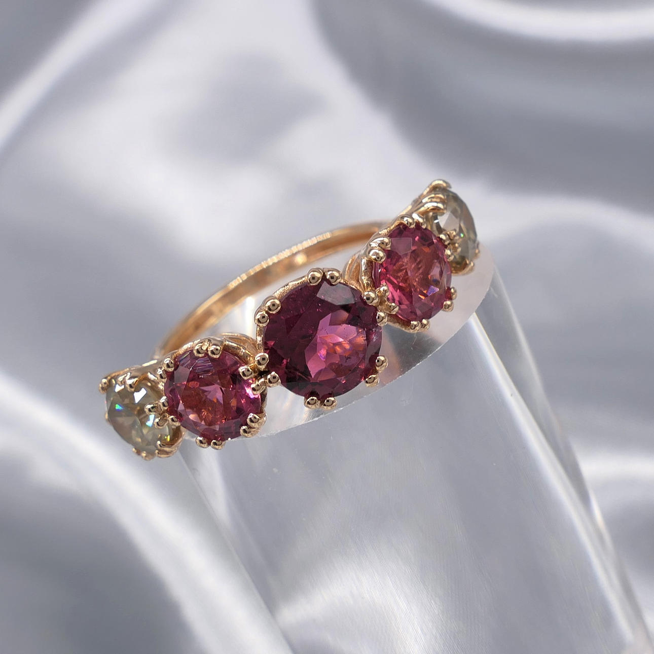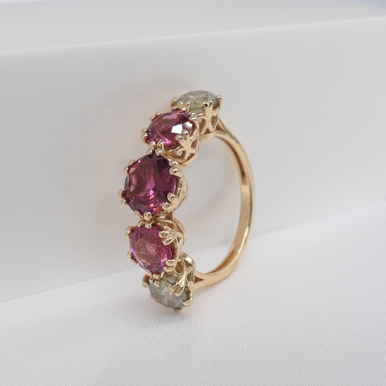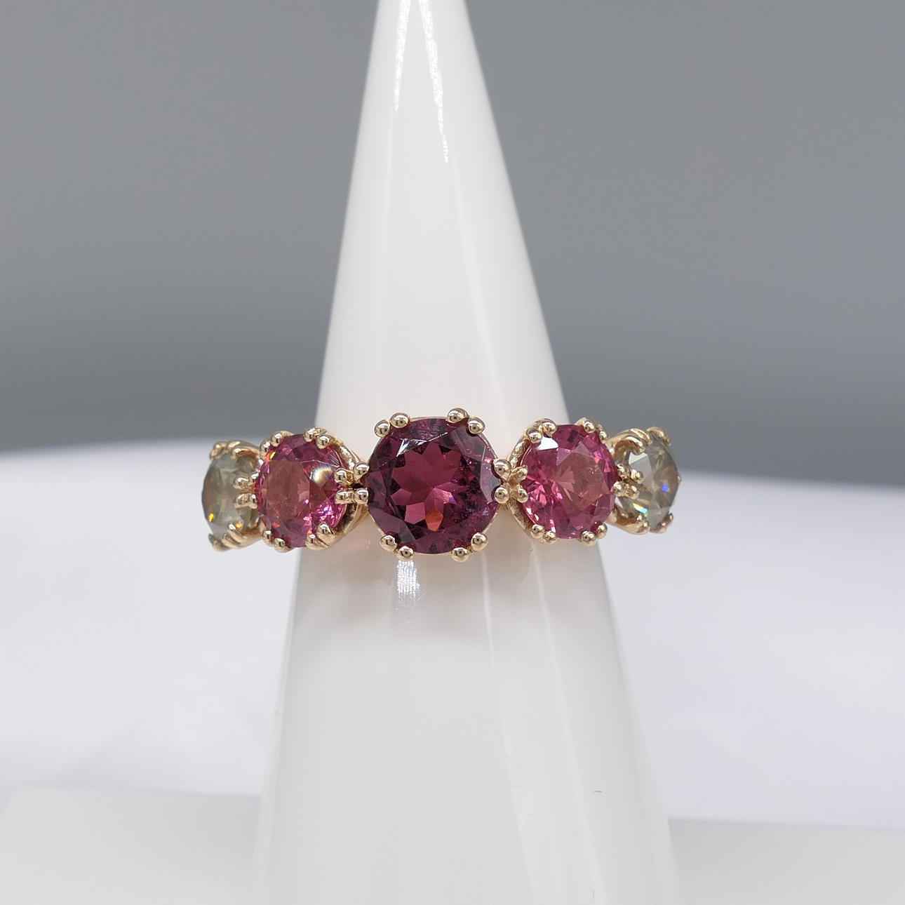 Ett certifierat 18k gult guld ringklo set med graderad naturlig turmalin och diamanter.