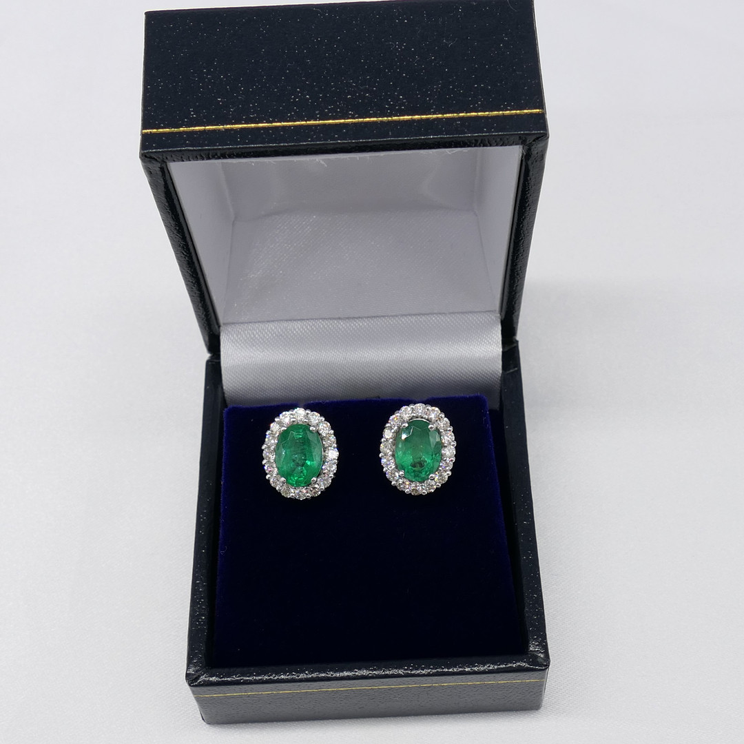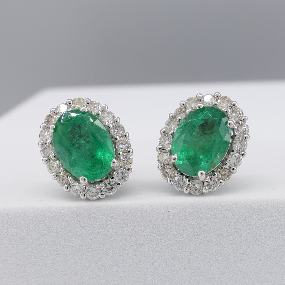 3106967. EMERALD & DIAMANT cluster örhängen.