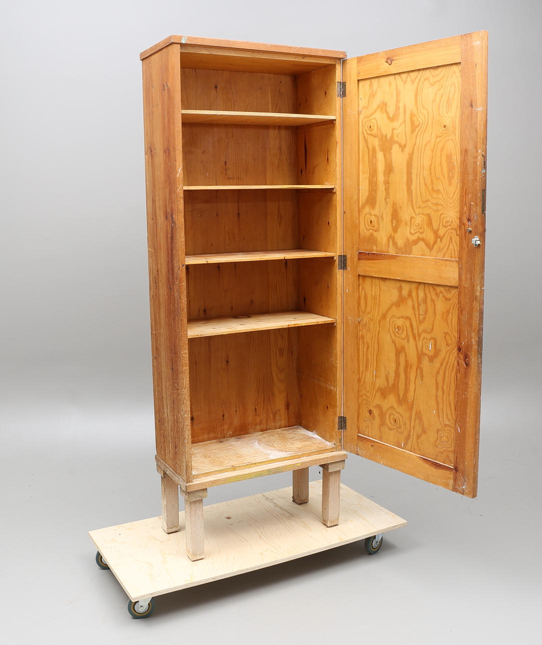 Med 5 hyllplan. Höjd 191,5 cm, bredd 69,5 cm, 35,5 cm.