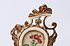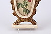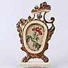 Senare bemålad samt senare glas, obs ej spegelglas, kan ej stå på fotstödet men har väggfäste, bruksslitage samt sprickor.
