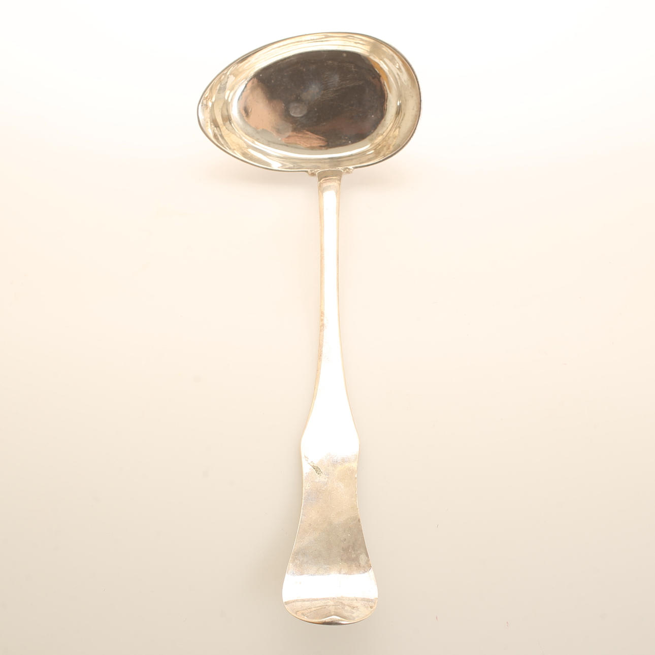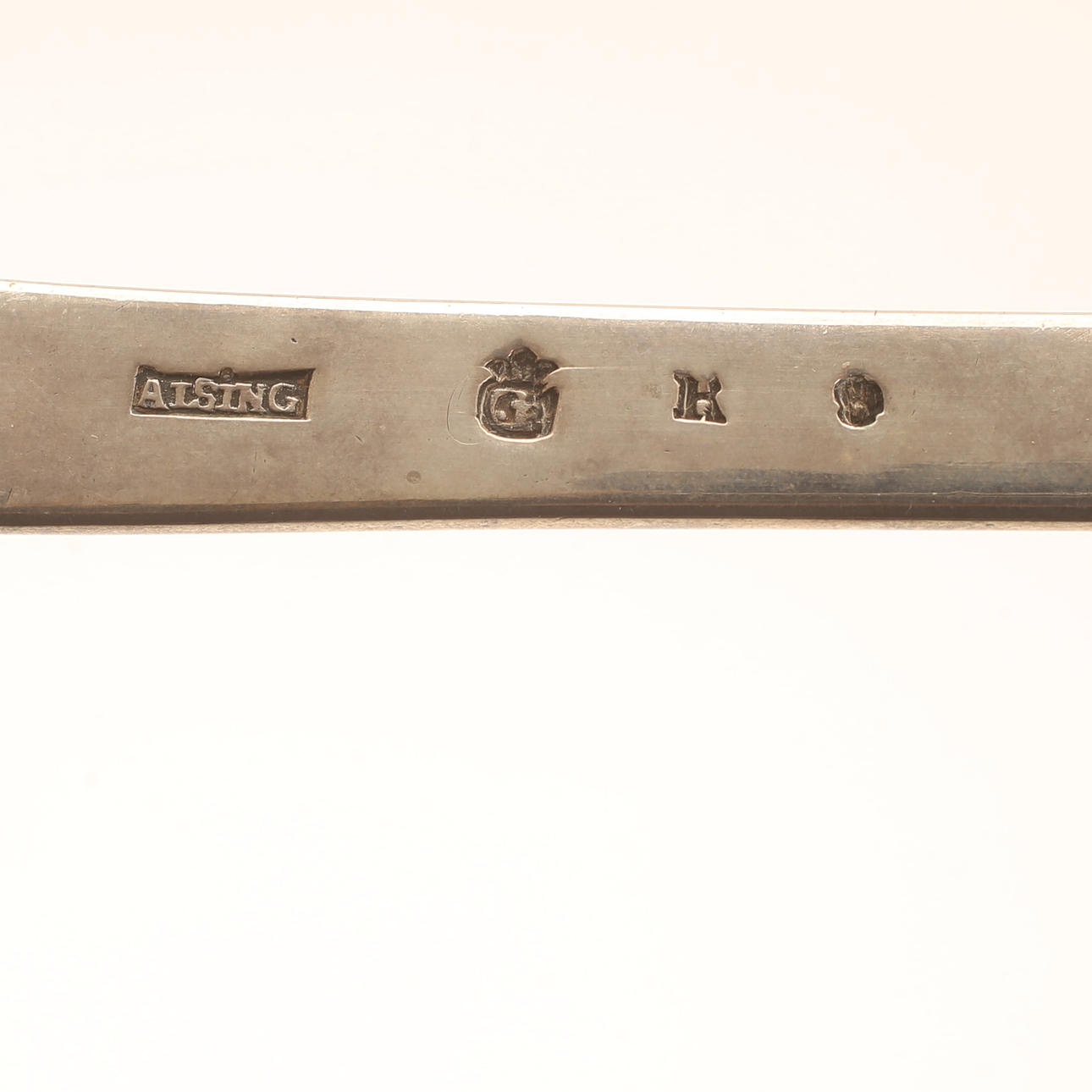 Slev, Alsing, Göteborg 1776. Vikt ca 253g, längd ca 34 cm. Med inskription; "För berömlig flit i Landthushållningen. Gåfva af Nil nisi suecoum och Witt Sällsk i Göteb till v Past Hr Jöns Sjögren den 18 Augusti 1776".