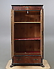 Två lådor samt skåp bakom dörrar. På lejontassar av gjuten metall. Höjd 166 cm, längd 86 cm, bredd 52 cm.