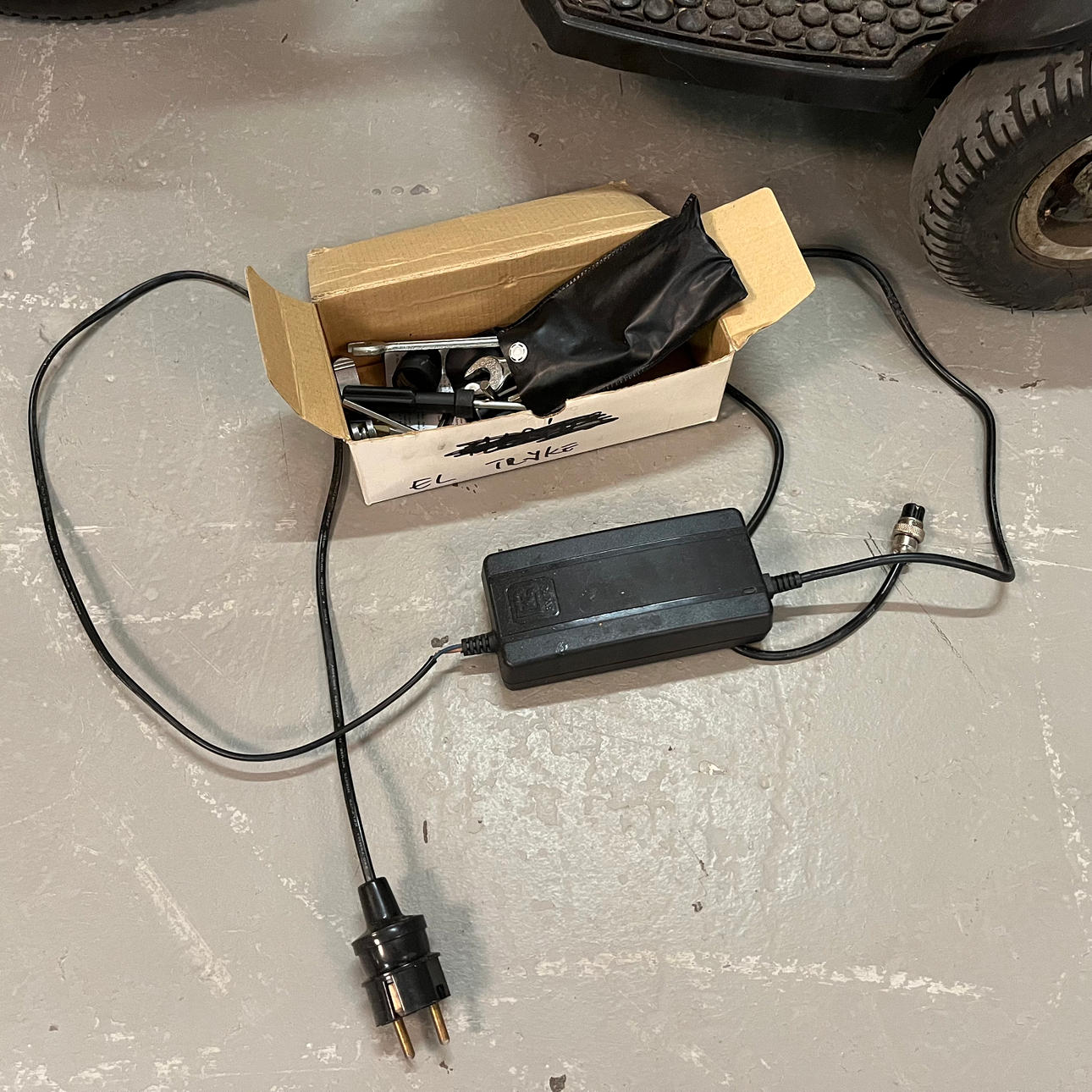 Laddare medföljer.