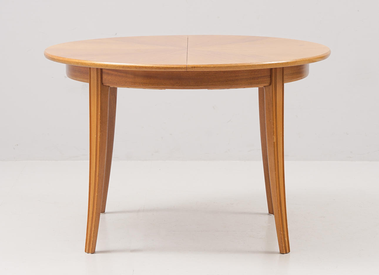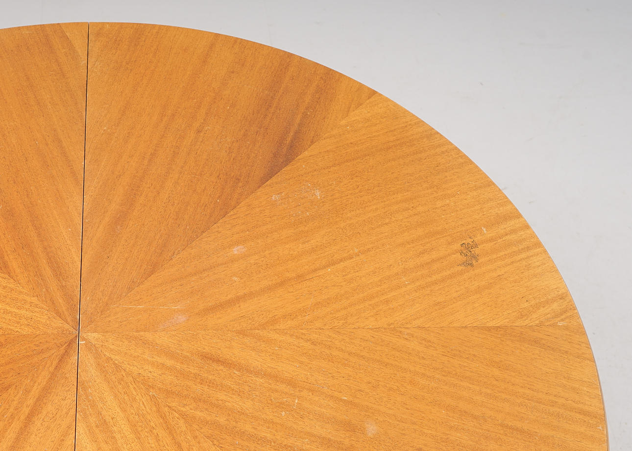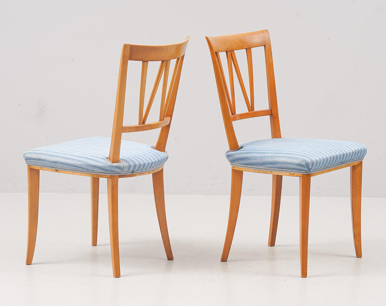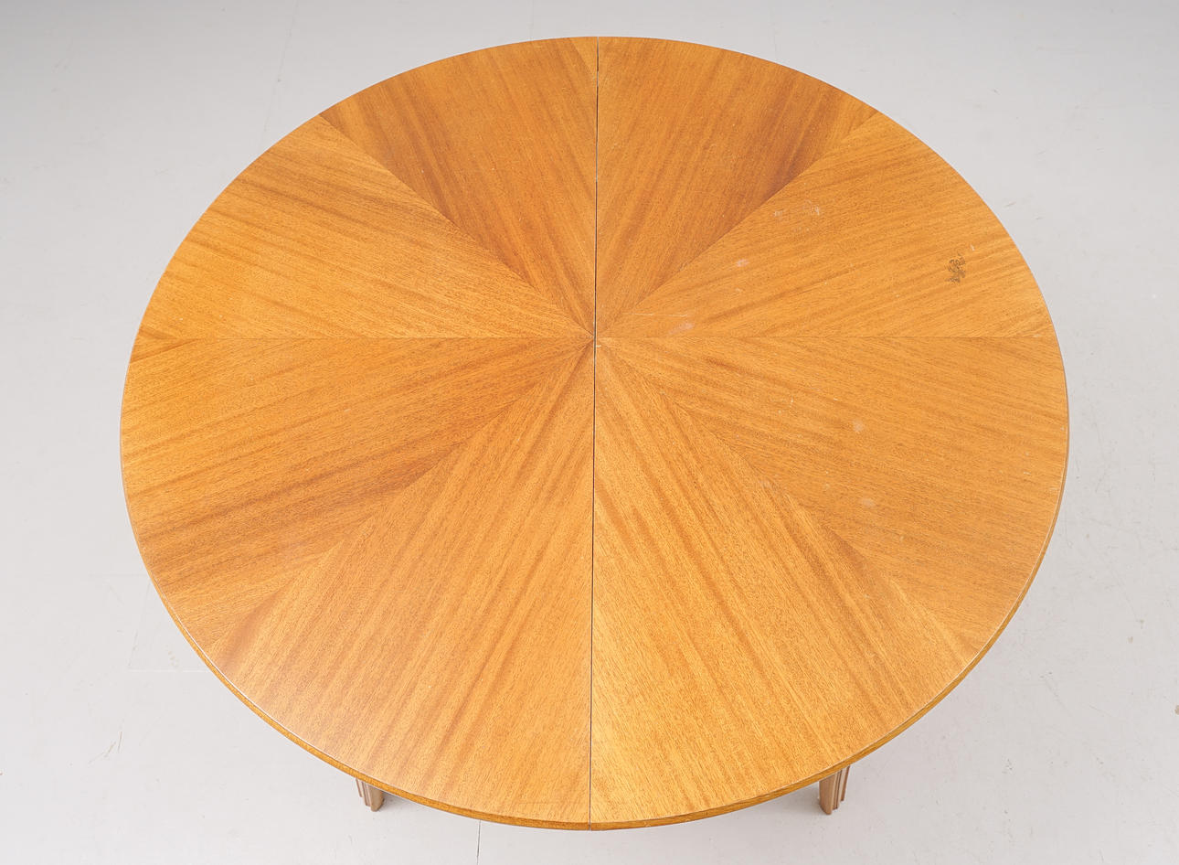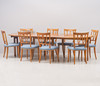 8 st stolar "Pyramid" bord med stödben fanerat med mahogny,