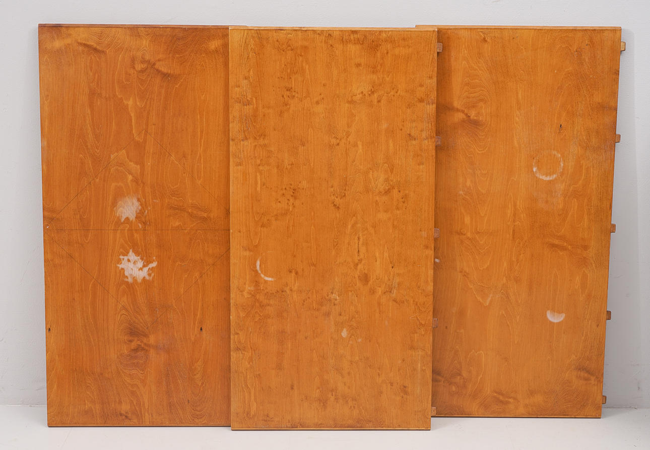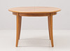 Bruksslitage, skavmärken, bordsskivan med fläckar, sitsar med mindre fläckar.