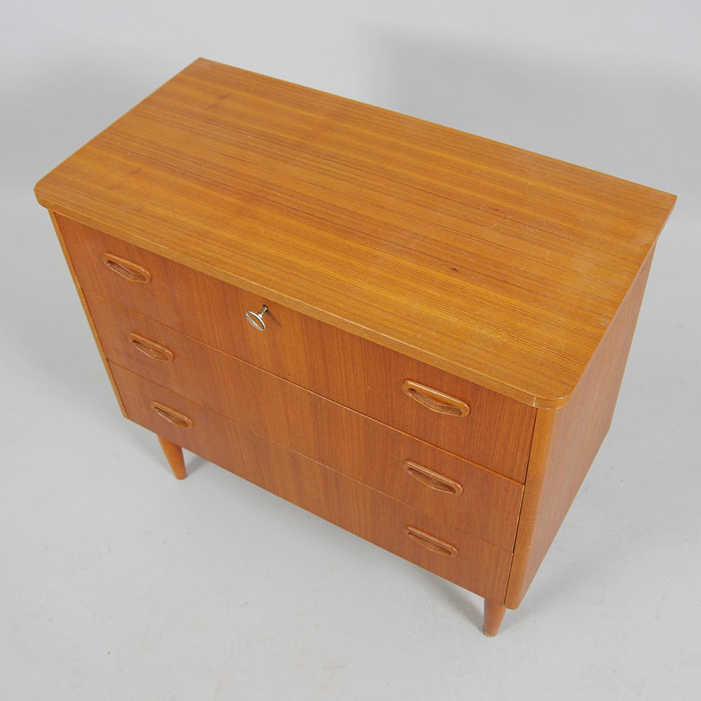 312722. BYRÅ, 3-lådig, teak, 1900-talets mitt.