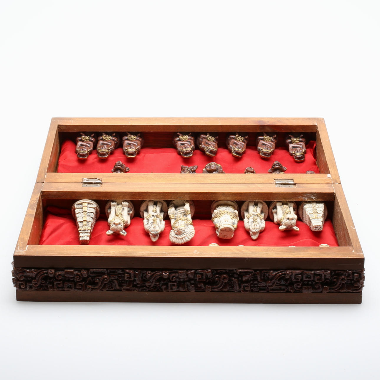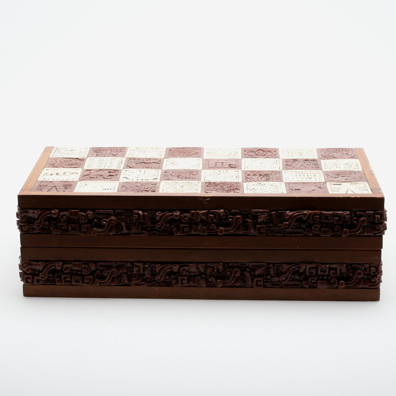 SHACKBRÄDE med PJÄSER, trä samt stenmassa, 1900-tal.