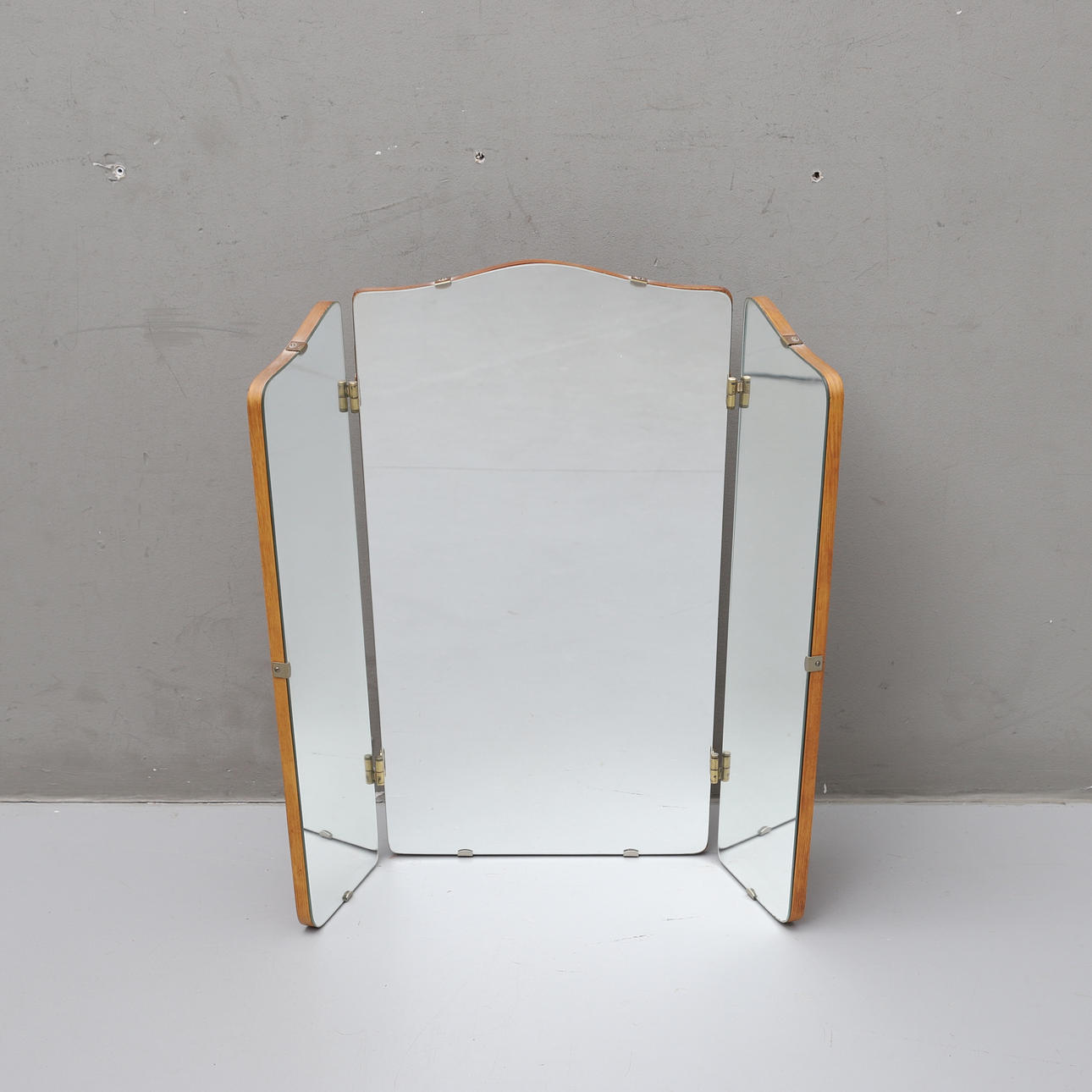 3127705. SPEGEL, tredelad, teak, 1940-tal.