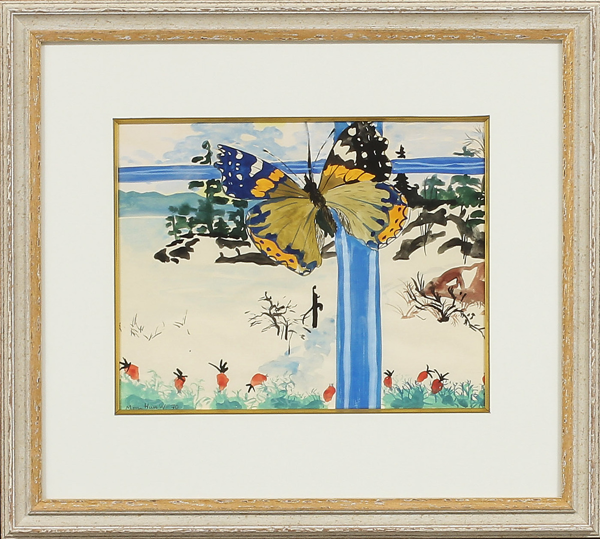 312825. MONA HUSS WALIN. Fjäril, akvarell, signerad.
