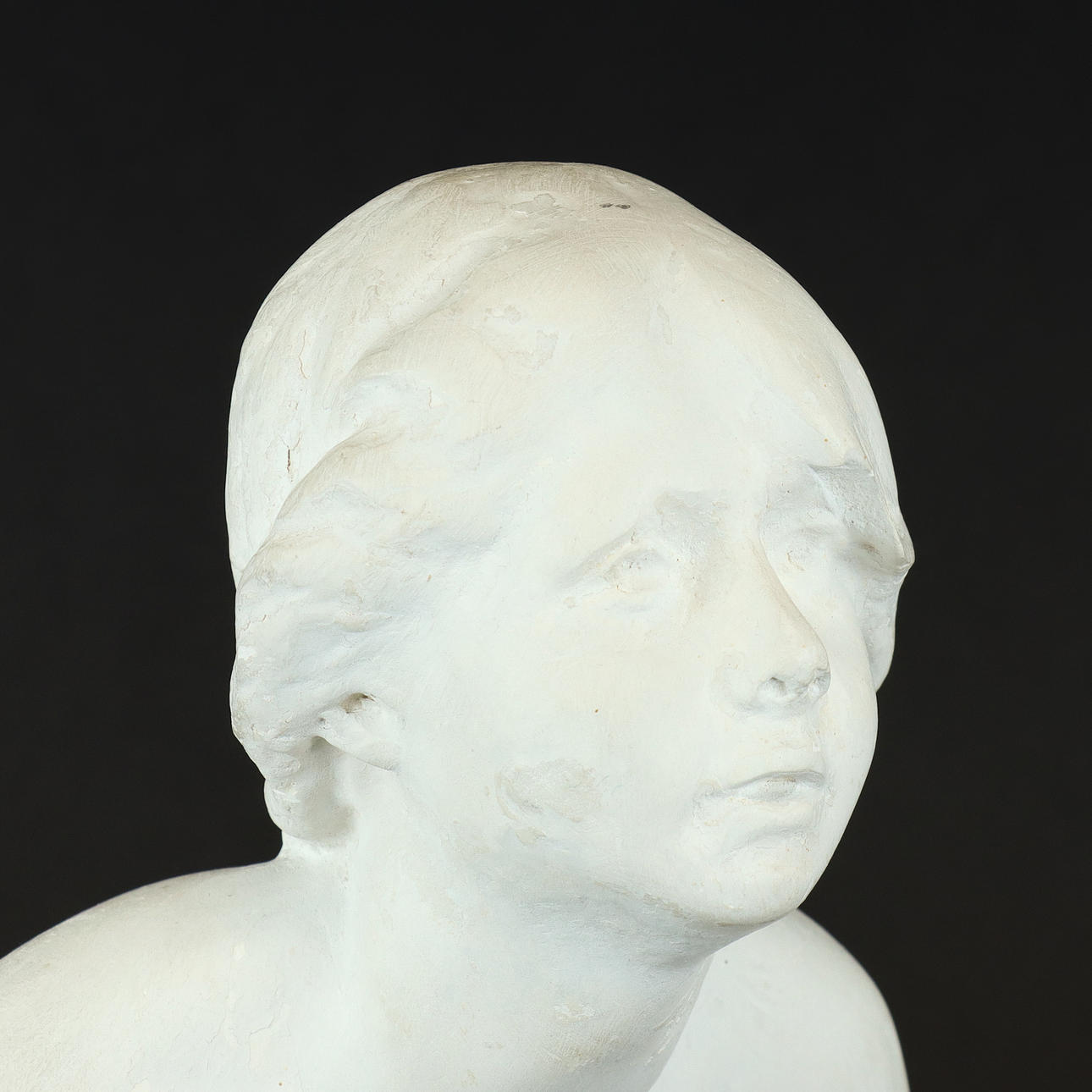 3128933. STATYETT "Grodan",efter Per Hasselberg,gips,patinerad.