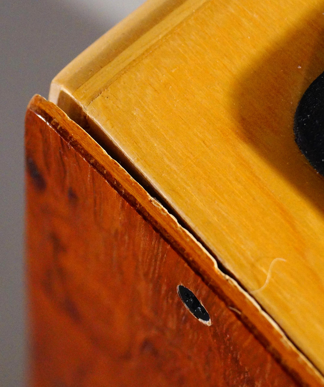 Prislapp (2195:-) hänger kvar, lådan förefaller vara oanvänd. Frontplattan har släppt lite i de övre hörnen.
