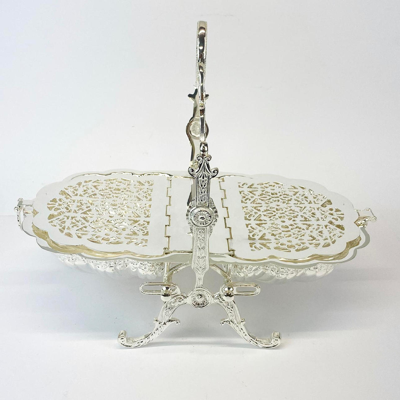 Ett silverpläterat hopfällbart uppvärmt bordsställ, H. 27cm.