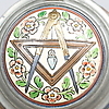 Dekor med böcker och frimurarsymbol. Höjd 17 cm.