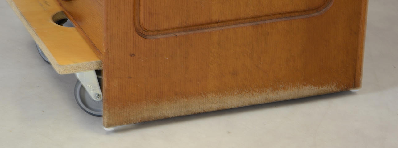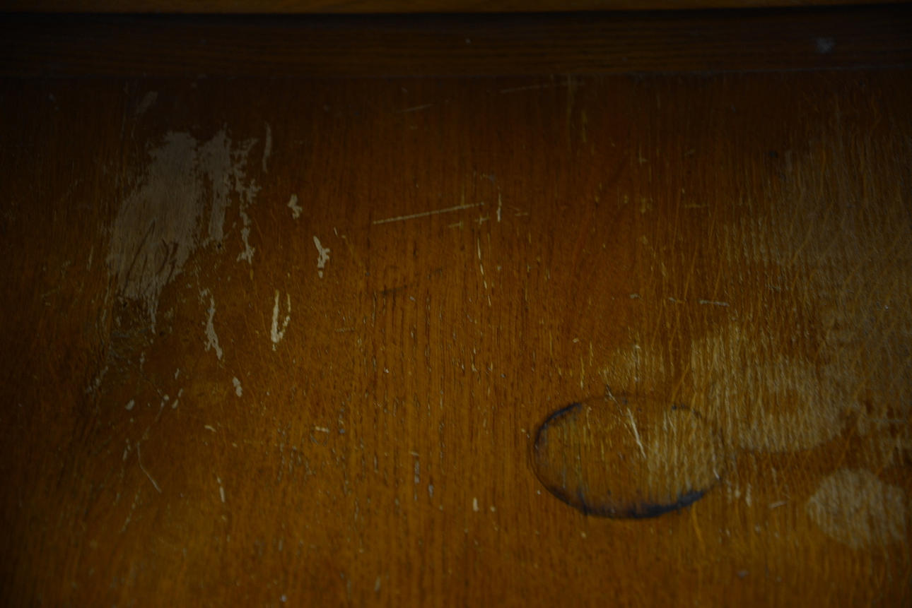 Slitage, repor, ställvis blekt.