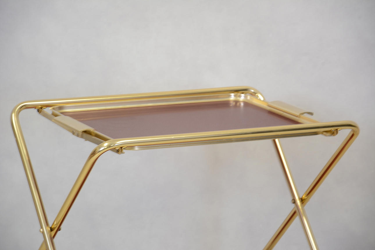 TEVAGN, gulmetall, Woodmet Limited, England, 1900-talets senare del, löstagbara brickor, på hjul. Höjd 66, 66x42 cm.